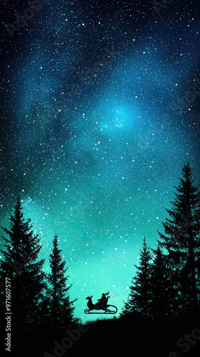 Magical Christmas night sky with stars and northern lights creates serene atmosphere