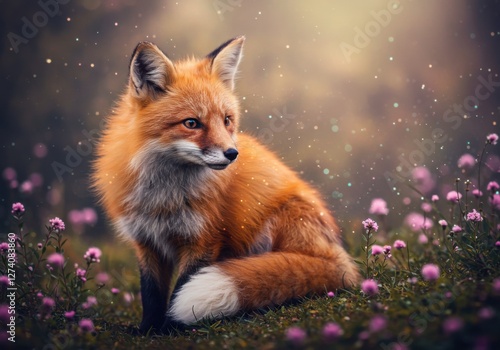 Magical Fox in a Dreamy Forest with Colorful Flowers