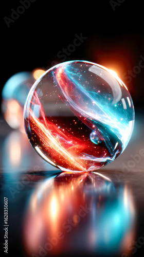Magical glowing cosmic nebula encased in a clear glass sphere, creating a mystical and vibrant visual effect