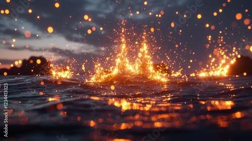 Magical Glowing Water Sparks Illuminate the Ocean at Dusk Nature Photography Serene Environment Close-Up Perspective