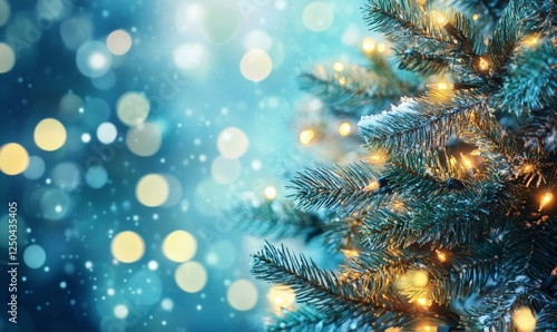 Magical Holiday Lights Glowing Amongst Tree Branches at Twilight, Dreamy Festive Season Atmosphere with Blurred Fairy Lights,