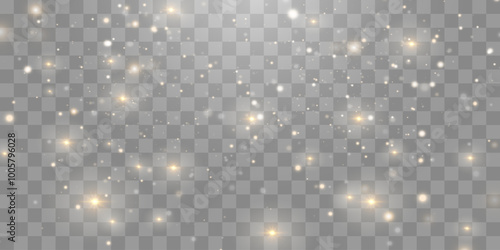 Magical light dust, dusty shine. Flying particles of light. Christmas light effect. Sparkling particles of fairy dust glow in transparent background. Vector illustration on png.