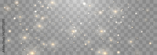 Magical light dust, dusty shine. Flying particles of light. Christmas light effect. Sparkling particles of fairy dust glow in transparent background. Vector illustration on png.