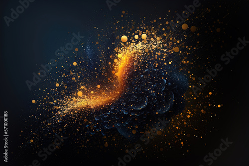 Magical neon background with bokeh and tiny particles, explosion and swirl of sparkles and confetti. Abstract dark background. AI