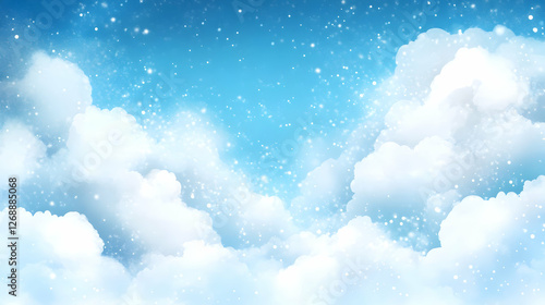 Magical night sky, fluffy clouds, stars, dreamy background, design