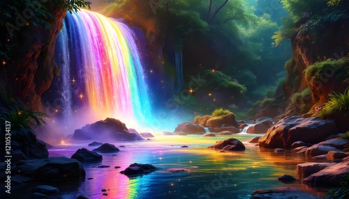 Magical Rainbow Waterfall Landscape Fantasy Art