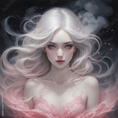 magical smoke swirls around the stage. A girl's figure appears in the midst of this fog