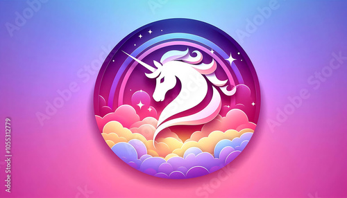 Magical Unicorn in Colorful Clouds and Background