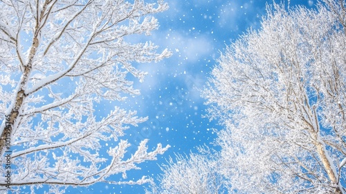 Magical Winter Wonderland: Snowy Trees Against a Bright Blue Sky