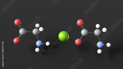 magnesium glycinate molecule 3d, molecular structure, ball and stick model, structural chemical formula dietary mineral supplement e580
