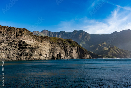 Magnificent cliffs and God's Finger (Dedo de Dios) near Puerto de las Nieves, Gran Canaria, Spain