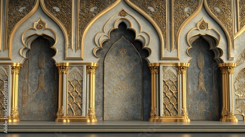 Magnificent Islamic Architecture: Intricate Gold and Gray Palace Wall