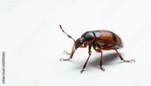 Magnified view of an isolated bug against a stark white backdrop, wildlife, insect