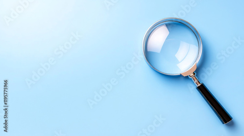 Magnifying glass on a light blue background for clarity and inspection