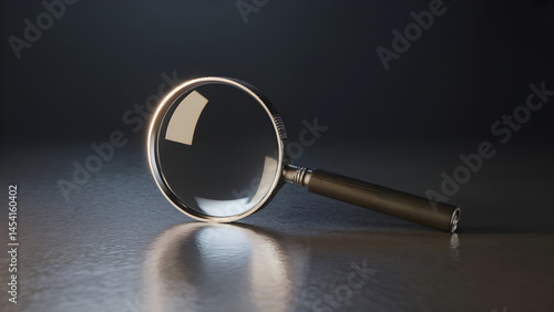 Magnifying Glass on Black Reflective Surface with Wooden Handle – Product Photography Concept