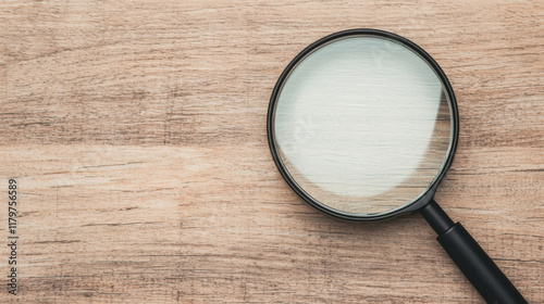 magnifying glass on wooden surface, symbolizing investigation and analysis. This evokes curiosity and attention to detail, perfect for educational or research themes