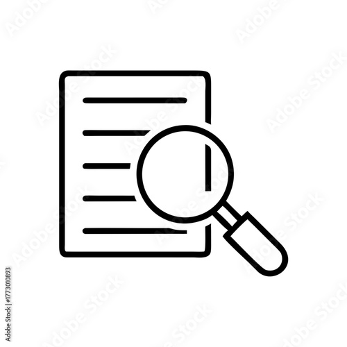 Magnifying glass over a document with lines for note-taking concept