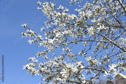 Magnolia kobus blossoms and blue sky match and enjoy the feeling of spring.