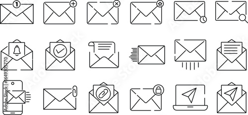 Mail & message Editable line stroke icon set. email vector icon set. Postal Letter, Mailbox, Email, Post Office, Envelope, Messaging. vector illustration