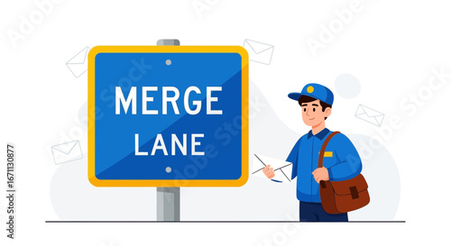 Mail Delivery and Merge Lane Sign Illustrate Communication and Address Concepts