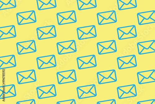 Mail pattern on yellow background . Mail wallpaper . Mail envelope background . Vector illustration
