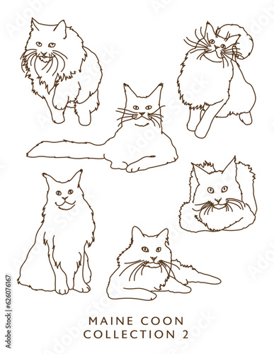 Maine Coon Cat Illustrations Outlines! Collection 2