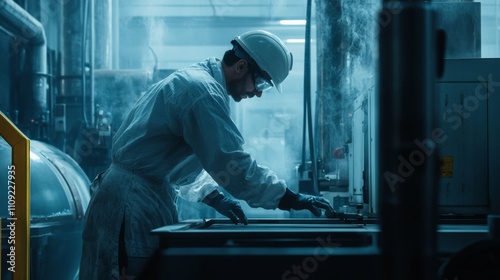 Maintenance worker utilizing precision tools, inspecting machinery, and ensuring compliance with industry regulations while conducting routine repairs, optimizing safety and efficiency in a
