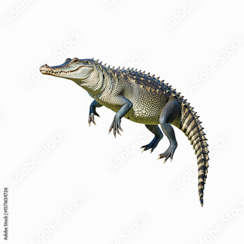 Majestic Alligator's Pose: An impressive, single alligator confidently poses in a striking display, showcasing its textured skin and powerful physique against an isolated setting.