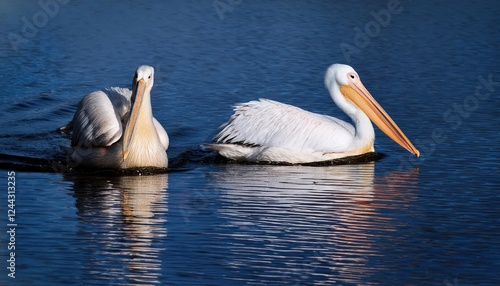 Majestic American White Pelicans Gathering on a Serene Sunset Lake, Capturing the Tranquility and Grace of Natures Majesty