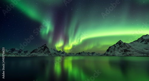 Majestic Aurora Borealis Dancing Over Serene Winter Landscape