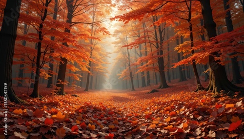 Majestic Autumn Forest with Golden Leaves and Soft Sunlight