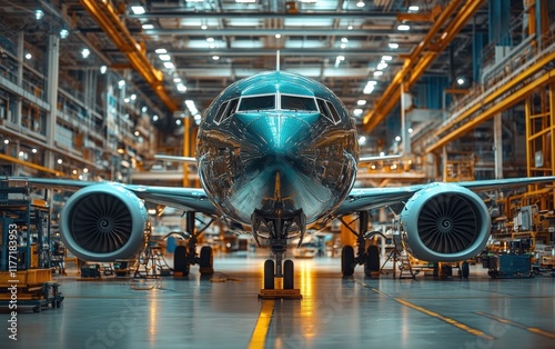 Majestic B737 in Hangar: Awaiting its next flight, gleaming under the hangar lights. A symbol of travel and technology.
