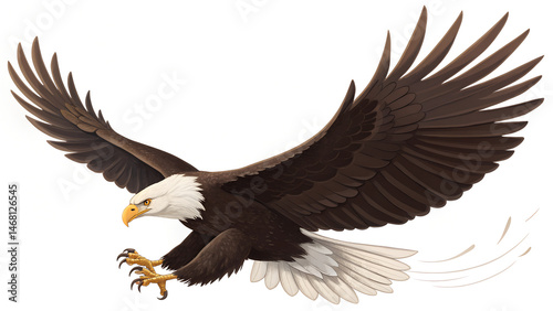 Majestic bald eagle soaring in flight with powerful wings and focused determination depicted