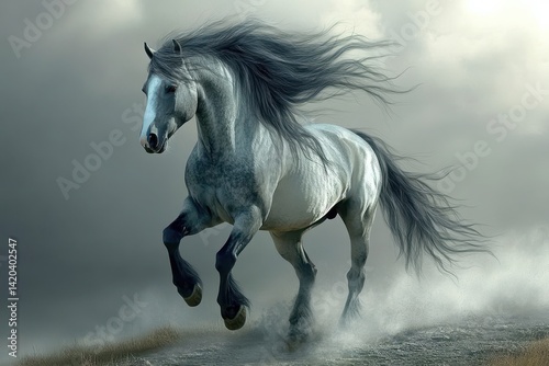 Majestic Blue Roan Stallion: A Wild Mustang Roaming Sykes Ridge in Montana's Pryor Mountains