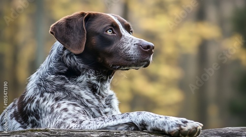 Majestic Brown and White Dog Posing Gracefully in Autumn Forest : Generative AI