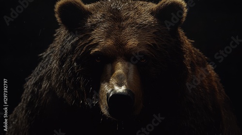 Majestic brown bear against black background