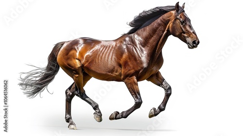 Majestic Brown Horse Galloping with Flowing Mane on White Background