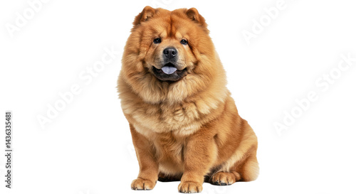 Majestic Chow Chow dog sits with a dignified expression, showcasing its impressive thick, fluffy coat. Regal Spitz-type breed isolated on white.