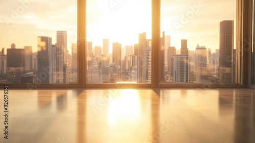 Majestic Cityscape Skyline Reflecting in Golden Sunset