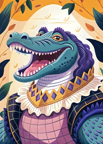 Majestic Colorful Alligator Portrait Royal Accessories Vibrant Expression Nature Background