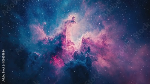 Majestic Cosmic Nebula Displaying Vibrant Colors of Pink, Purple, and Blue Against a Starry Background, Capturing the Beauty and Mystery of Outer Space