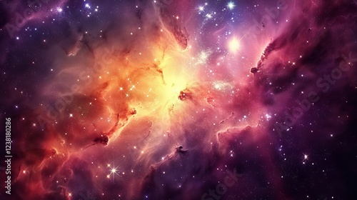 Majestic cosmic panorama of a swirling nebula surrounded by glimmering galaxies in the depths of outer space, featuring an ethereal abstract cosmos background