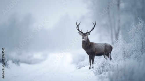 Majestic deer in snowy forest