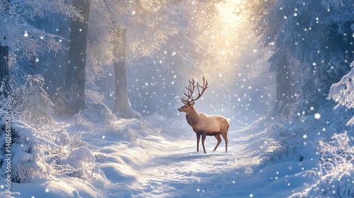Majestic Deer in Snowy Forest, A Beautiful Winter Scene with Majestic Wildlife