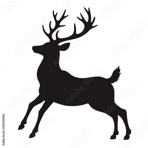Majestic Deer Silhouette with Large Antlers in Dynamic Pose