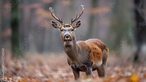 Majestic deer standing gracefully in the forest surrounded by autumn foliage highlighting its elegant features : Generative AI