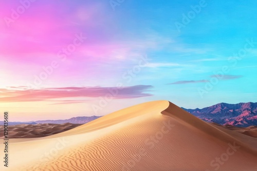 Majestic desert dune under a vibrant pastel sky evoking tranquility in serene natural landscape environment
