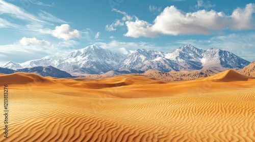 Majestic Desert Landscape with Snow-Capped Mountains in Distance