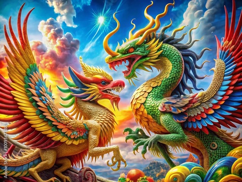 Majestic Dragon and Phoenix Artwork Symbolizing Harmony, Strength, and Cultural Mythology in Art