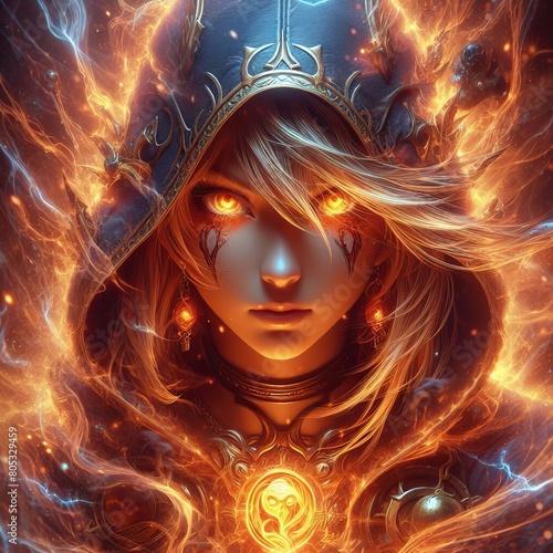 Majestic Female Warrior in Detailed Armor with Intricate Headdress in a Fantasy Painting-Style Illustration